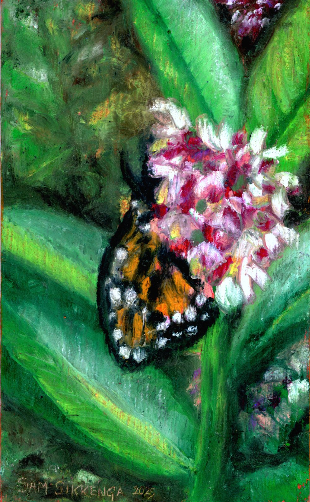 Frame: 6 x 8 inch solid walnut, shadow box frame (custom made by the artist)